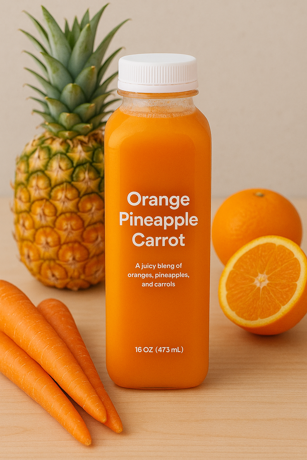 Wake up your day with this bright and refreshing blend of juicy oranges, sweet pineapple, and crisp carrots. Bursting with vitamin C, beta-carotene, and natural antioxidants, this tropical fusion helps strengthen your immune system, supports glowing skin, and gives you a clean energy lift—no caffeine needed. One sip of Sunny Boost and you’ll feel like sunshine is flowing through you!
